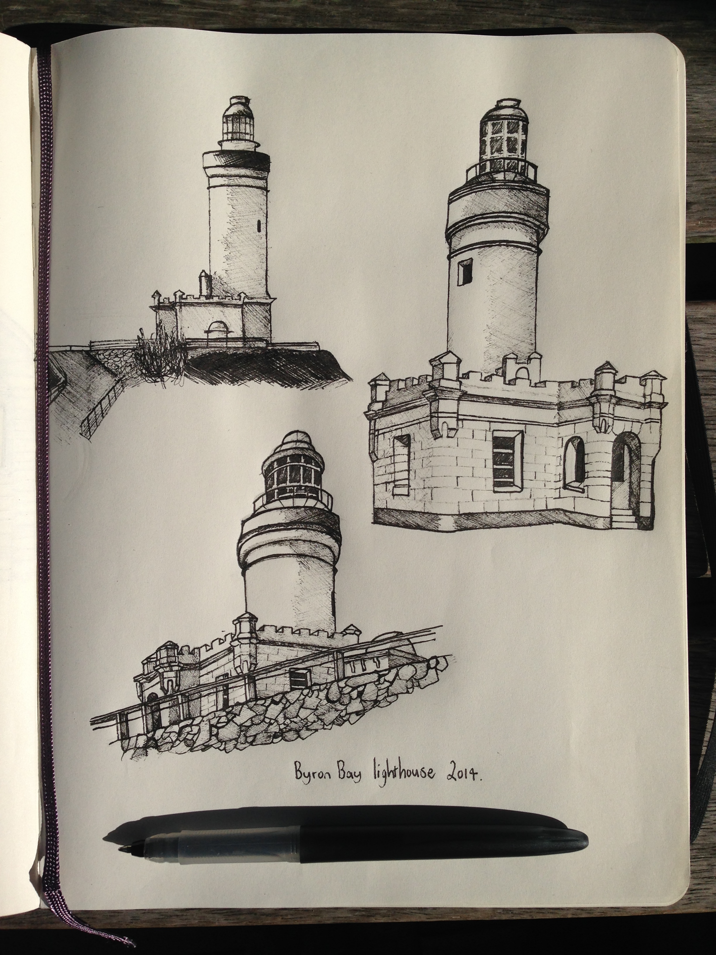 I’m currently on a holiday in Byron Bay at the moment and wen’t and checked out the lighthouse. While I was there I did a few quick sketches in pen and ink.